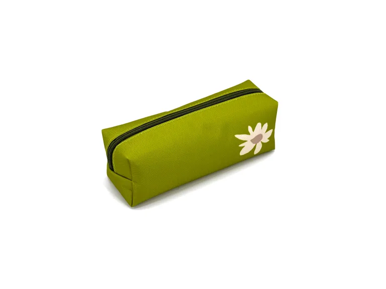 Wholesale Custom Stylish Green Pencil Case with Daisy Flower Design